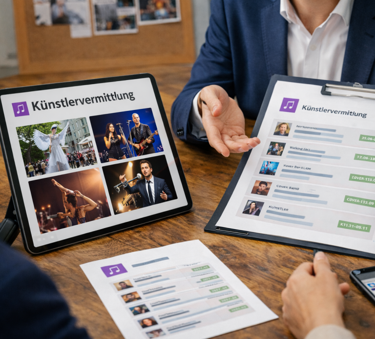 Auf Basis Ihrer Wünsche und der aktuellen Verfügbarkeiten unterbreiten wir Ihnen gezielte Vorschläge und stehen Ihnen beratend zur Seite. Von der ersten Idee über die Abstimmung bis hin zur Vertragsabwicklung begleiten wir den gesamten Prozess professionell und transparent. So profitieren Sie von unserer Marktkenntnis, unserem Qualitätsanspruch und unserer Verlässlichkeit – und können sicher sein, dass auf der Bühne alles passt.
